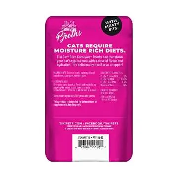 Tiki Cat Born Carnivore Broths, Salmon Recipe, Hydration and Flavor Supplement Cat Food Topper, 1.3 oz. Pouch (Pack of 12)
