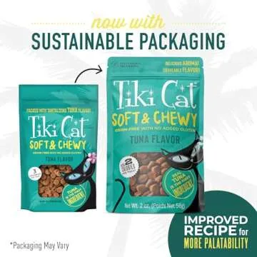 Tiki Cat Soft & Chewy Treats, Tuna Flavor, 3 Calories Per Treat with Grain-Free and No Added Gluten, 2 oz Pouch