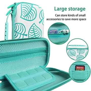 TIKOdirect Carrying Case for Switch lite, Shockproof Portable Travel Bag with Glitter Galaxy cover, Screen Protectors and Cute Leaf Thumb Grips Caps, Animal Crossing Green