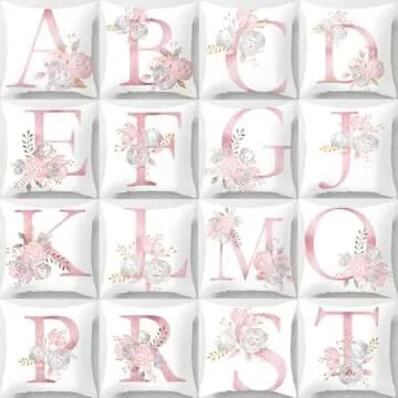 Tillskuch Pink Throw Pillow Covers Cute Alphabet Decorative Cushion Covers Square Letter Throw Pillows Protectors for Sofa Couch Bedroom Chair Home Decor 18 x 18 Inch(B)