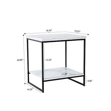 Tilly Lin Faux Marble Side Table, White Marble Small Coffee Table with Storage, 2-Tier End Table for Living Room, Nightstand for Bedroom (White, Black)