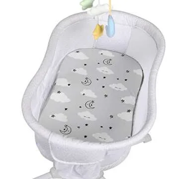 Show moreIntroducing the TILLYOU Baby Bassinet Sheets, the perfect bedding solution designed specifically for your little one. Made from premium materials, these fitted sheets offer an ultra-soft and skin-friendly surface that prioritizes the comfort and health of your baby. With a gentle touch, they ensure that your baby's sleeping environment is cozy and inviting. The sheets come in a charming gray cloud pattern, making them suitable for both girls and boys.