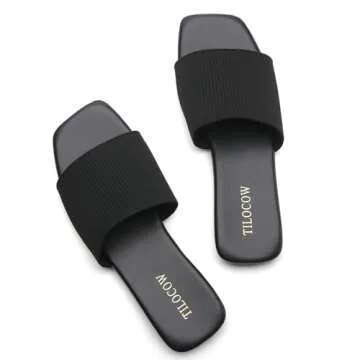 Tilocow Knitted Flat Sandals For women Square Open Toe Slide Sandals Casual Summer Shoes