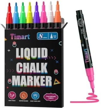 These Timart chalk markers are perfect for back-to-school projects and activities, making them an essential tool in any creative arsenal. Great for marking special occasions, improving engagement in learning, or simply adding a pop of color to your workspace, these markers are a fantastic addition to any educational or artistic endeavor.