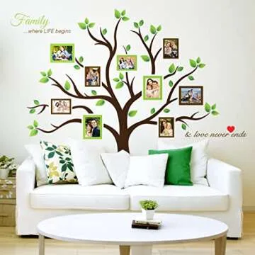 TIMBER ARTBOX Large Family Tree Wall Decal โ Sweet Family Tree Photo Frames Collage Wall Decor for Living Room, Staircase & Hallway โ Family Tree Picture Frame Vinyl Stickers with Quote