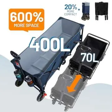 TIMBER RIDGE 51.2'' Extended Collapsible Wagon Cart with Brakes and Cargo Net, 350LBS Heavy Duty Foldable Utility Wagon with Adjustable Handle, 400L Capacity Portable Cart for Camping Sports Shopping