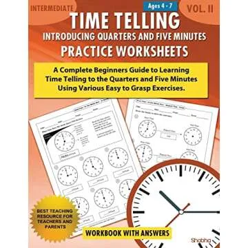 Time Telling - Introducing Quarters and Five Minutes - Practice Worksheets Workbook With Answers: Daily Practice Guide for Elementary Students