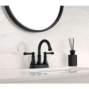 TimeArrow Matte Black 2 Handle Centerset Bathroom Sink Faucet 3 Holes with Drain Assembly, High Arc Modern 4 Inch Bathroom Vanity Lavatory Faucet with Brass 360° Swivel Spout, TAF067Y-MB
