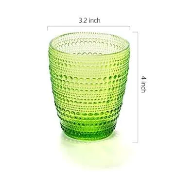 Show moreIndulge in a delightful drinking experience with the TIMEFOTO Drinking Glasses Set, where style meets functionality. This exquisite set comprises four premium quality glass cups, each boasting a captivating hue that elevates your dining ambiance. Designed for both beauty and practicality, these glasses have a unique rhombus embossment that not only adds an elegant touch but also ensures a robust non-slip grip. Whether you're enjoying a refreshing drink of juice, savoring a fine wine, or hydrating with water, these glasses offer the perfect balance of light-weight design and sturdy craftsmanship. Each glass holds 10 ounces, just the right size for various beverages—ideal for celebrations or daily use!
