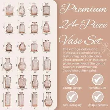 Introducing the Timeliss Glass Bud Flower Vase Set, a premium collection of 24 exquisite vases that will transform any event into a stylish celebration. Crafted from thick, durable glass, these vases are designed not only for beauty but also for lasting resilience against breakage. Each vase boasts vintage colors and intricate patterns that captivate the eye, making them perfect for enhancing your home decor, weddings, parties, and various special occasions. With their stunning appearance,...