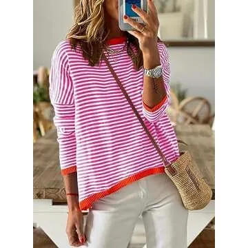 TimeMark Women's Casual Striped Crewneck Long Sleeve Sweater - Lightweight & Stylish