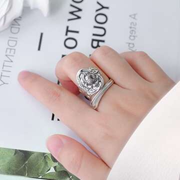 ... Show moreThe TimemoryUS Spoon Ring beautifully combines artistry with elegance, showcasing a delicate rose design crafted from genuine S925 sterling silver. This enchanting ring is not just a piece of jewelry; it is a statement of sophistication suitable for all intellectual women who appreciate the finer things in life. The unique vintage spoon shape allures with its intricate detailing, making each ring a personalized treasure that reflects the wearer's individuality.