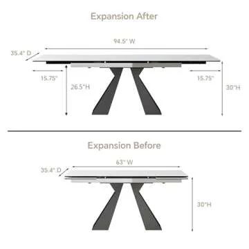 TimesGate Extendable Dining Table for 8-12 Seat, Flexible Stretch, Tabletop Made from Rock Plate and Tempered Glass, Solid Carbon Steel Base, 35.4" D x 94.5" W x 30" H, White Top