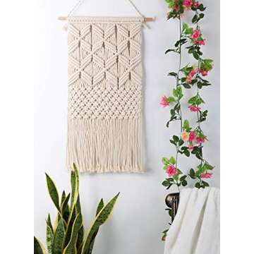 TIMEYARD Macrame Wall Hanging Tapestry Boho Home Decor, 13" W x 26" L, Woven from 5mm 100% Twisted Cotton Cord