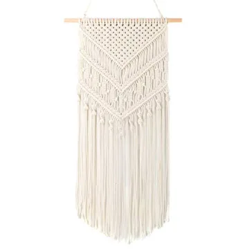 Show moreTransform any room into a bohemian paradise with the TIMEYARD Macrame Woven Wall Hanging. This exquisite piece combines the timeless art of macrame with modern geometric designs to create a stunning visual impact. Crafted from high-quality, durable materials, this wall hanging is not only beautiful but also built to last. Its elegant off-white/tan color complements any decor, making it a versatile addition to your home, apartment, or dorm room. The intricate patterns and even threads ensure a flawless look, while the sturdy dowel provides reliable support. Whether you're looking to add a touch of boho chic to your space or searching for the perfect gift, this macrame wall hanging is sure to impress.