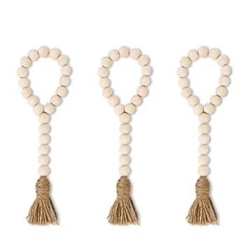 TIMEYARD Wood Bead Garland with Tassels - 3Pcs Rustic Decor for Home