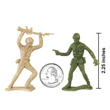 Show moreIntroducing the TimMee Plastic Army Men - a classic collection of toy soldier figures designed for imaginative play and endless adventures! Each set contains a total of 100 meticulously crafted plastic soldiers, evenly split between Desert Tan and Olive Green colors, ensuring you have the perfect platoon for every scenario. Each figure is up to 2.1 inches tall and crafted at a scale of 1:35, making them the ideal size for miniature battle scenes and imaginative warfare.