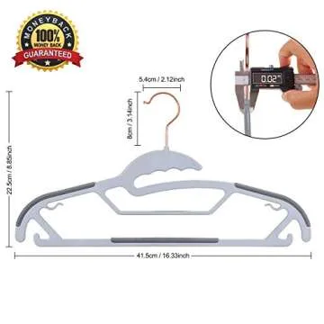 TIMMY Plastic Hangers, 50 Pack Ultra Thin Non Slip Clothes Hanger Space Saving Coat Hangers, 360°Rotating Rose Gold Hook Hanger Heavy Duty Pant Hangers (Grey)
