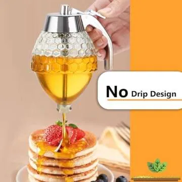 Timtopno Honey Dispenser, Glass Honey Dispenser No Drip, Honey Pot with Stand, 8 oz Honey Jar, Maple Syrup Honey Container, Elegant Honeycomb Design for Home Decor for Any Occasion