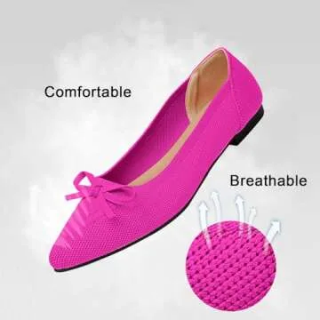TINGRISE Women's Flats Pointed Toe Bow Knit Ballet Shoes Comfortable Dressy Mesh Slip On Flat Pink US8