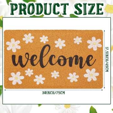Show moreIntroducing the Tinideya Decorative Welcome Door Mat – the perfect blend of style and functionality to elevate your home’s entryway! This delightful doormat features charming welcome letters accompanied by vibrant daisy flowers, ensuring a warm and inviting atmosphere for anyone entering your door. Measuring a generous 18" x 30", it’s the ideal accessory to adorn your front porch, back door, or any doorway in your home. With its vivid colors and adorable design, this mat not only serves a practical purpose but also adds a touch of personality to your home decor.
