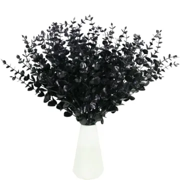 Show more Transform your decor with the Tinsow Black Artificial Eucalyptus Stem Bulk. This stunning set includes 65 exquisite black eucalyptus branches, each boasting approximately 25 realistic leaves. Standing tall at about 15 inches, these versatile stems are perfect for adding a touch of elegance to any room or occasion. Crafted with premium-quality plastic and iron wire, they provide both durability and flexibility, allowing you to bend and shape them to fit your unique style. Ideal for both festive seasons and everyday use, these branches will elevate your space effortlessly.