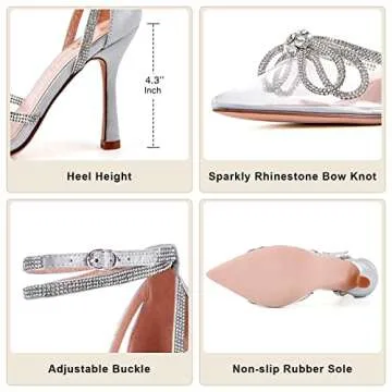 TINSTREE Transparent Heels for Women,Women's Crystal Slingback Pumps Pointed Toe Heels Strappy Triangle Heeled Party Wedding Bride Sandal Heel Pump with Rhinestone Sparkling Transparent,06