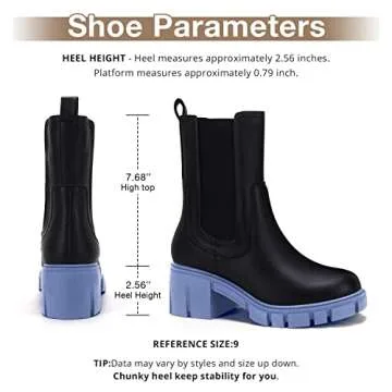 TINSTREE Women’s Stylish Chunky Heel Platform Boots - Blue & Black Mid Calf Chelsea Booties