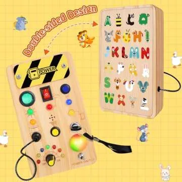 TINTECUSA Busy Board Montessori Toys for Toddler, Wooden Sensory Board Switch Toy with Color-Changing LED Light Up Travel Toys Educational Plane Travel Activity for 1-6 Year Old Girls & Boys Gifts