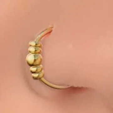 Tiny Beaded Nose Ring - 14k Gold Filled 7mm Diameter Nose Hoop Ring - 24G Nose Piercing Jewelry for Women Hypoallergenic Nose Ring