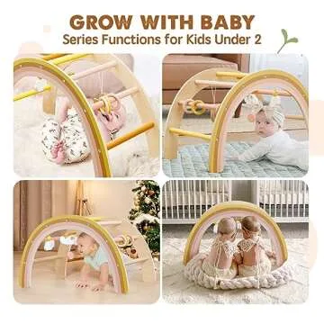 Show moreIntroducing the Tiny Land Baby Play Gym, designed to grow with your child and provide endless entertainment as they reach new developmental milestones! Crafted with a careful balance of functionality and aesthetic appeal, this wooden baby gym is not just another infant accessory; it’s a versatile play station that combines enjoyment and learning. With its ability to transform from a play gym for infants aged 0 to 5 months to a climbing structure for toddlers, this product embodies the principles of the Montessori educational philosophy. Each feature resonates with parents' desire for both safety and an appealing home decor.