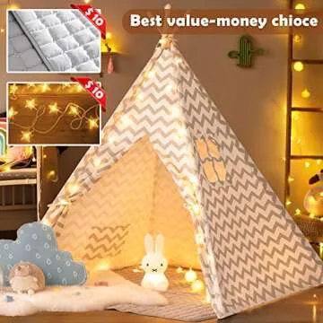 Why You Will Love This Product: Watching your child play, read, or even take a nap in their special teepee will bring a smile to your face. The Tiny Land Kids Teepee Tent isn't just a physical plaything; it fosters creativity, imagination, and a love for playtime. It will become a cherished part of your child's childhood memories, a space filled with adventure and creativity. Investing in this teepee means giving your child a private world to explore and enjoy.