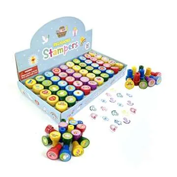 Show more Bring joy and creativity to your child's life with the TINYMILLS 50 Different Stamps Set! This dazzling assortment features 50 unique stamp designs that inspire creativity and learning while spreading positive Christian messages. Each stamp is pre-inked, ensuring that your little ones can jump right into their artistic endeavors without the need for any additional ink pads. Made from BPA-free, non-toxic materials, rest assured that these stamps are safe for children and have passed rigorous CPSIA and ASTM testing.