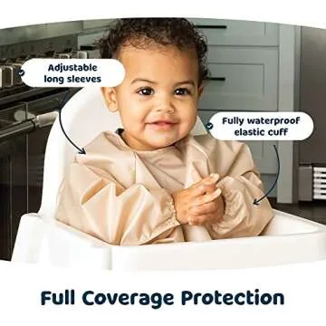 However, what truly sets this bib apart is its long sleeve design, perfect for keeping your baby’s arms tidy as they explore different foods. Additionally, the no-scratch closure is gentle on sensitive skin, making it a travel-friendly companion for planes, cars, or train journeys. With a tug-proof closure, the bib remains securely in place while being easy to remove without causing discomfort or tangling in hair.