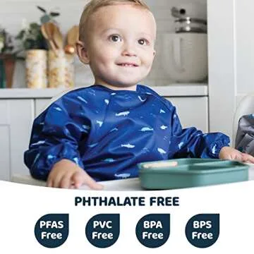 Tiny Twinkle Mess Proof Baby Bib, Cute Full Sleeve Bib Outfit, Waterproof Bibs for Toddlers, Machine Washable, Tug Proof Closure, Baby Smock for Eating, Long Sleeved (Ocean Life, Small 6-24 Months)