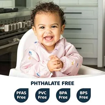 Tiny Twinkle Mess Proof Baby Bib, Cute Full Sleeve Bib Outfit, Waterproof Bibs for Toddlers, Machine Washable, Tug Proof, Baby Smock for Eating, Long Sleeved (Unicorn Confetti, Small 6-24 Months)