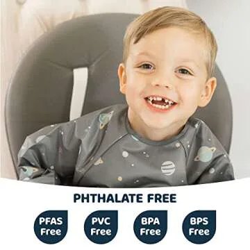 Tiny Twinkle Mess Proof Baby Bib, Cute Full Sleeve Bib Outfit, Waterproof Bibs for Toddlers, Machine Washable, Tug Proof Closure, Baby Smock for Eating, Long Sleeved (Space, Small 6-24 Months)