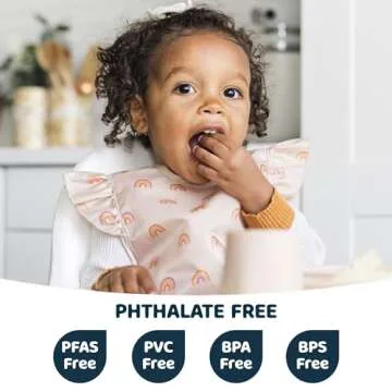 Tiny Twinkle Mess Proof Baby Bib - Waterproof Baby Apron - Machine Washable - PVC, BPA, & Phthalate Free - Great Travel Bib for Baby Eating - Baby Food Bibs (Boho Rainbow, Small 6-24 Months)