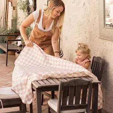 Tiny Twinkle Mess-Proof Splat Mats for Under high Chairs or Table Cover Art Projects for Baby and Toddler - Waterproof, Washable Floor or Table Splash mat 51" x 51" (Brown Checkers)