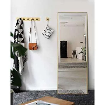 TinyTimes 65"×22" Full Length Mirror, Floor Mirror with Stand, Full Body Tall Mirror, Freestanding or Wall-Mounted, Brushed Thin Frame, for Bedroom, Liveing Room- Gold