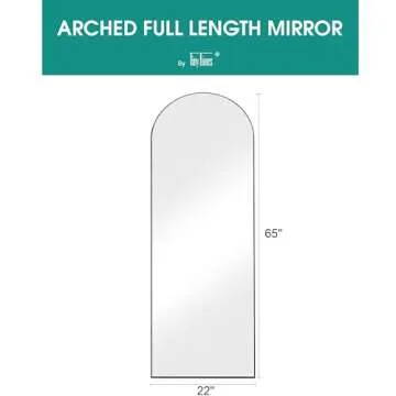 TinyTimes 65''x22'' Arched Full Length Mirror, Floor Mirror with Stand, Full Body Mirror, Wall Mirror, Modern & Contemporary Full Length Mirror, Aluminum Alloy Frame - Black…
