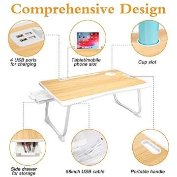 Tiovo Laptop Bed Desk with USB Ports - Portable & Versatile