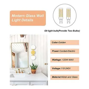 Show moreExperience the perfect blend of elegance and modern functionality with the Tipace Gold Wall Sconce. This stunning mid-century style wall light features a sleek design that enhances any space—from restaurants to living rooms, and from bedside areas to bathrooms. Each sconce is crafted with high-quality materials including a golden finish and sophisticated glass globes, combining style with practicality. The fixture comes with two included 3000K G9 bulbs, providing a warm ambiance that transforms your environment without compromising on brightness.