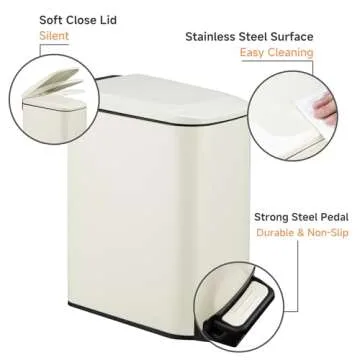 TIPGO Slim Bathroom Trash Can with Lid Soft Close, 6 Liter / 1.6 Gallon Stainless Steel Garbage with Removable Inner Bucket, Small Trash Bins for Bedroom, Office (Cream)