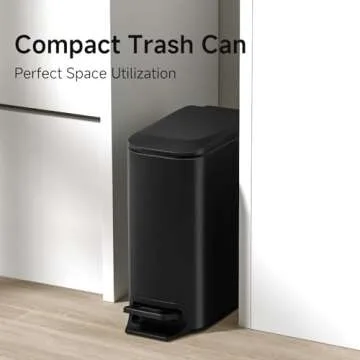 TIPGO Slim Bathroom Trash Can with Lid Soft Close, Step Pedal, 6 Liter / 1.6 Gallon Stainless Steel Trash Bin, Small Garbage Cans for Bedroom, Office, Kitchen (Matte Black)