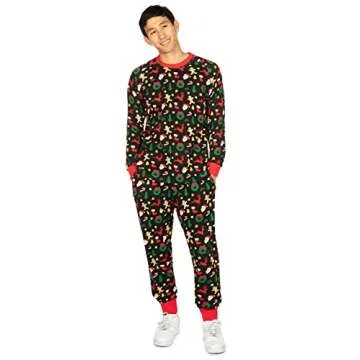 Show moreEmbrace the festive spirit with the Tipsy Elves Black Cookie Cutter Pajama Set for Men, a holiday ensemble designed for ultimate comfort and cheer. Crafted from buttery soft blend fabric, these pajamas offer a smooth and lightweight fit, making them a perfect choice for lounging around on Christmas Day. Whether you're enjoying a cozy morning with family or posing for that perfect holiday photo, these PJs guarantee both style and comfort. With a distinct and humorous design, you'll surely bring joy and laughter to your holiday gatherings.