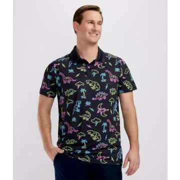 Show moreIntroducing the Tipsy Elves Golf Shirt for Men, a vibrant addition to your wardrobe designed for those who dare to express their unique style on and off the golf course. This polo is more than just a shirt—it's a statement piece that blends functionality with flamboyance, making it ideal for both athletic pursuits and lively social gatherings. Crafted with an enhanced 4-way stretch fabric, it offers unparalleled mobility so you can swing freely while looking fantastic.