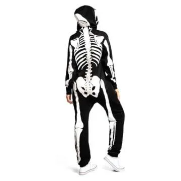 Show more Step into the spirit of Halloween with the **Tipsy Elves Halloween Skeleton Costume for Women**. This fun and spooky jumpsuit is designed to fit all body types, thanks to its **unisex sizing** that allows everyone to enjoy the festivities in comfort and style. Crafted with **premium materials**, this costume features eye-catching printed bones on both the front and back, complete with a hood and mesh eye holes for an incognito look! Whether you’re headed to a Halloween party, a costume contest, or simply trick-or-treating, this jumpsuit guarantees to keep you looking chic and festive.