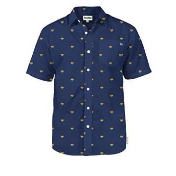 Tipsy Elves Men's Pride Blue Rainbow Hearts Button Down Shirt Size 3X-Large