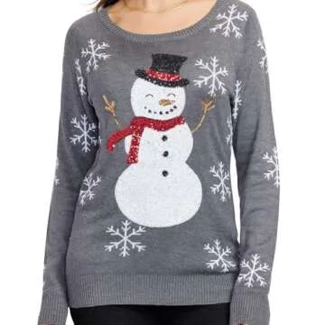 Tipsy Elves Women's Gray Sequin Snowman Christmas Sweater Size Large